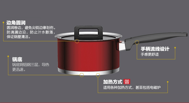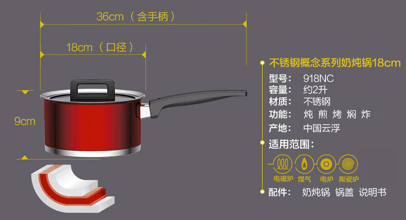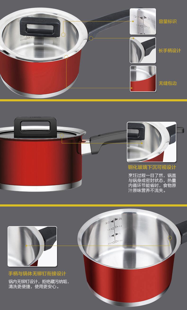 京东自营德国WOLL 不锈钢18cm奶锅 汤锅 炖锅 家用煮泡面锅 电磁炉通用 锅具 红色