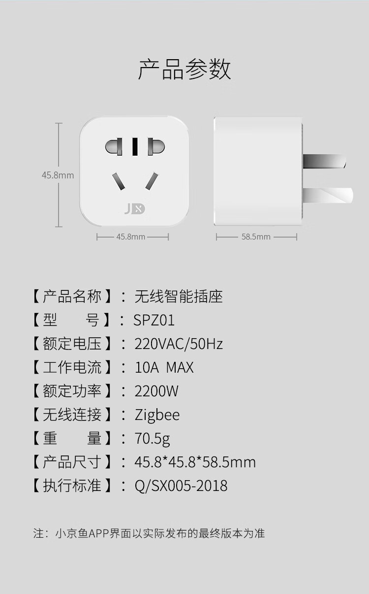 京东自营京鱼座丨京选(京东自有品牌)智能插座 (需另购网关搭配使用)定时开关/耗电量统计 SPZ01 zigbee版 支持叮咚/京鱼座音箱 小京鱼APP远程控制