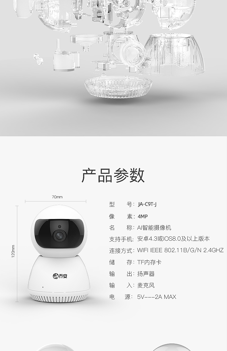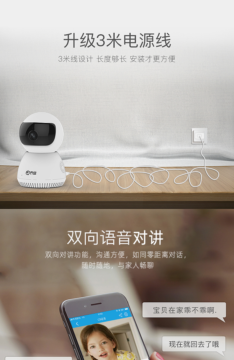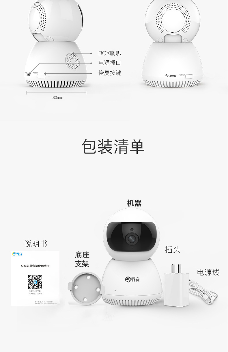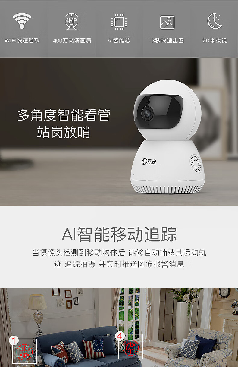 京东自营乔安(JOOAN) JA-C9T-J AI智能监控摄像头 家用无线wifi网络高清监控 母婴看护夜视手机远程监控器