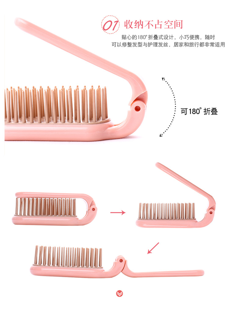 京东自营佳茉 可折叠便携旅行软齿小梳子随身携带直发卷发两用卷发梳塑料加厚