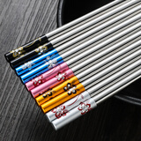 京东自营唐宗筷 304不锈钢筷子 公筷 家用酒店用 防滑 中空防烫 金属筷子 创意加长 混色星钻 5双装 餐具套装 C6028