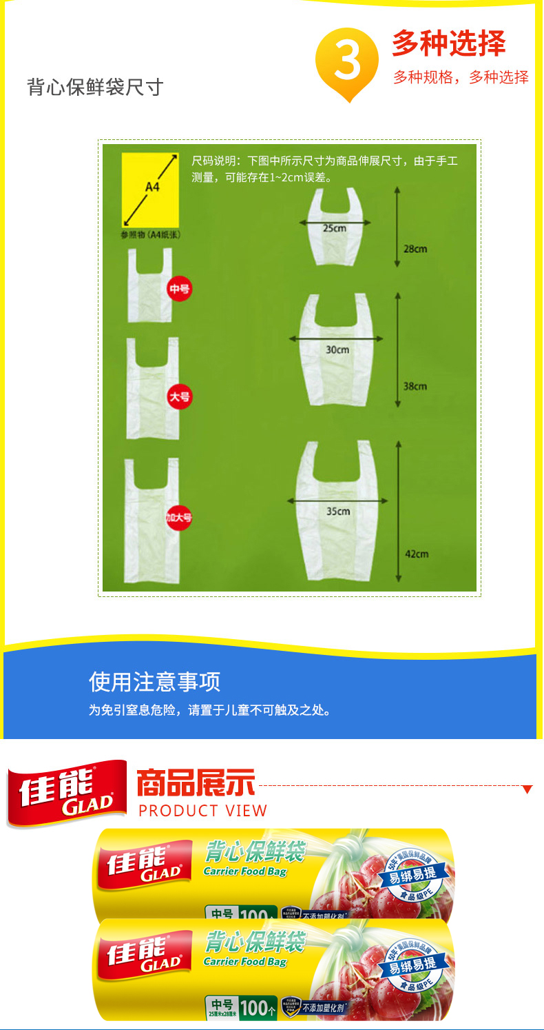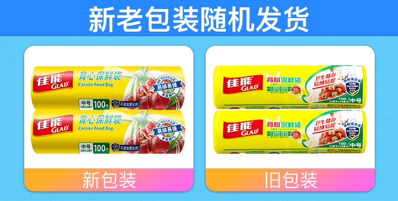 京东自营佳能(Glad)背心袋点断式保鲜袋中号CB25(25cm*28cm*100个)两组装