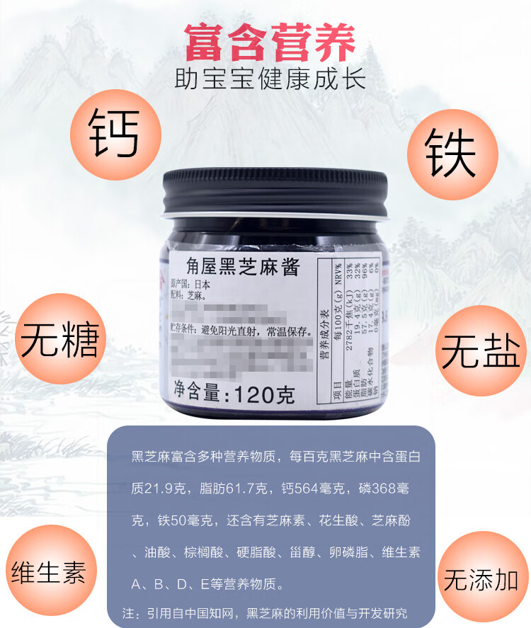 京东自营日本进口 角屋 纯黑芝麻酱120g/罐 无添加无盐佐餐拌饭拌面拌菜火锅蘸料