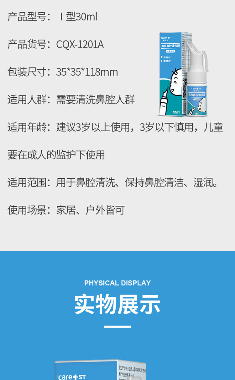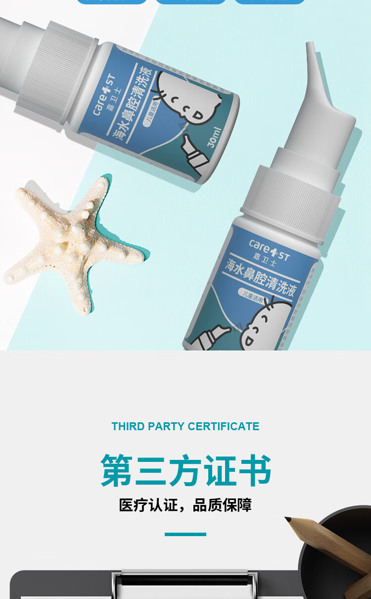 京东自营嘉卫士(Care1st) 儿童装婴儿生理性海盐水滴鼻喷剂鼻腔喷雾生理盐水洗鼻喷鼻器鼻腔护理孕妇通用洗鼻水30ml