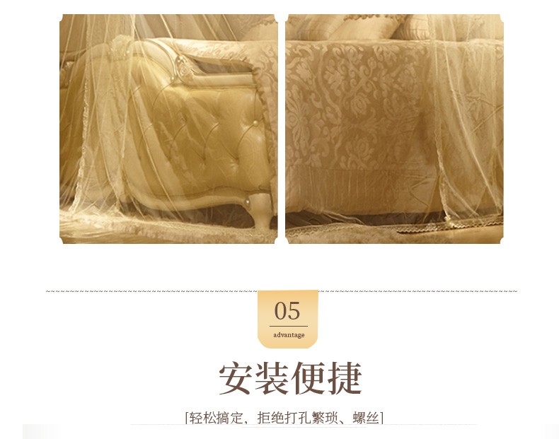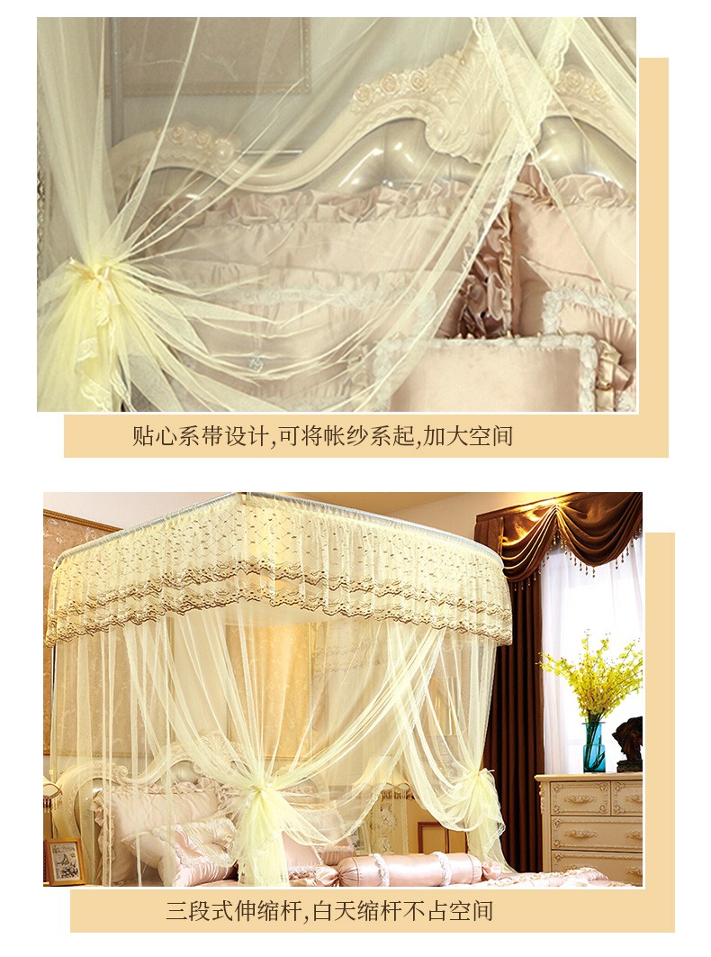 京东自营雅鹿 蚊帐 三开门钓鱼杆方顶U型落地式支架伸缩蚊帐 不锈钢支架 米黄 1.8米床