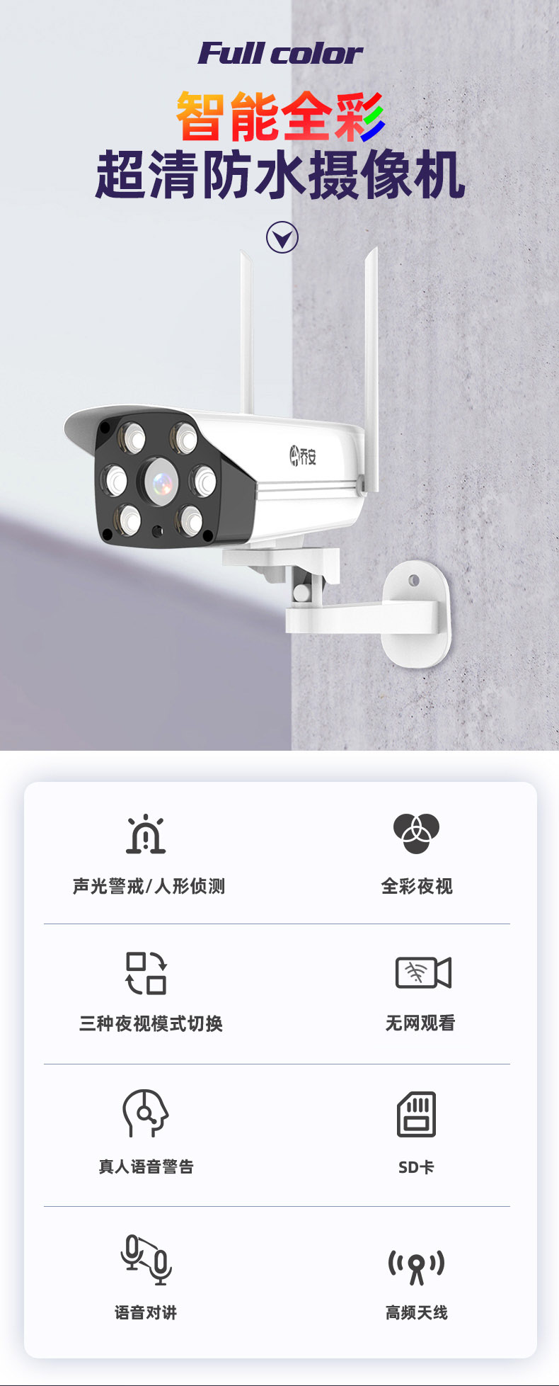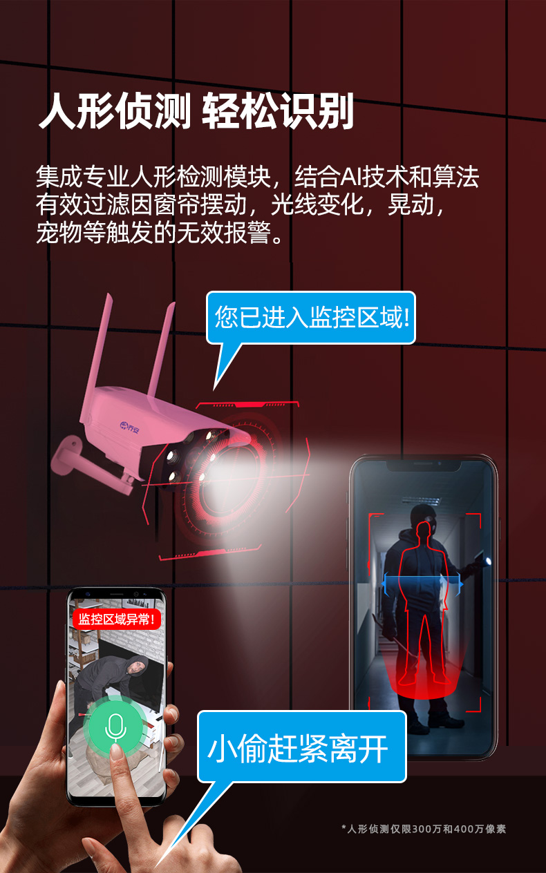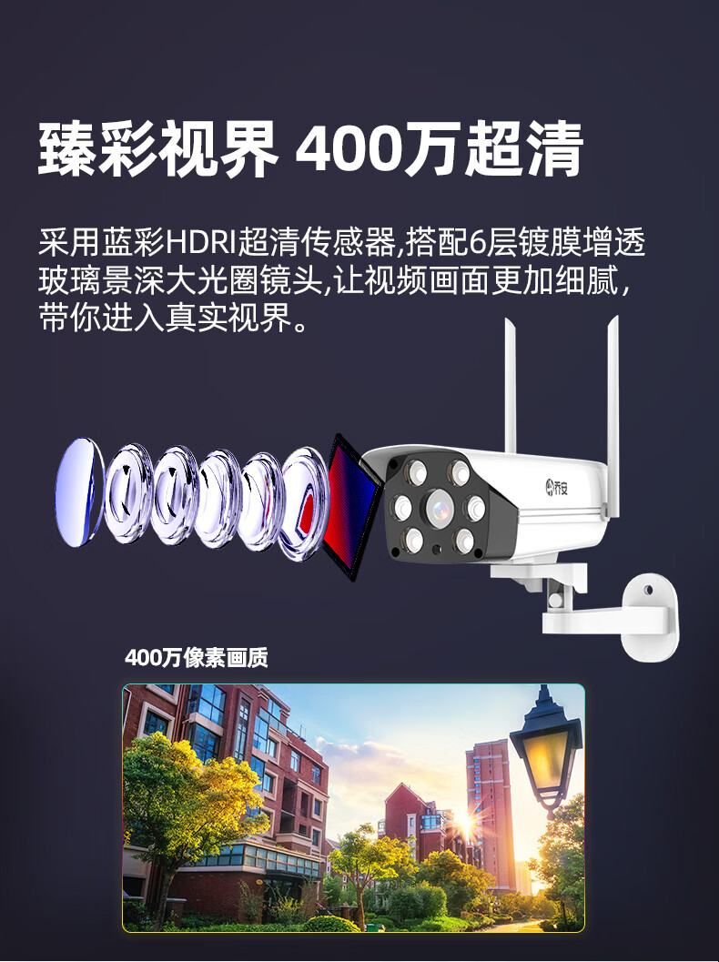 京东自营乔安 JOOAN F2T-6监控摄像头一体机400万网络高清摄像机 无线WIFI家用室外夜视智能手机监控器