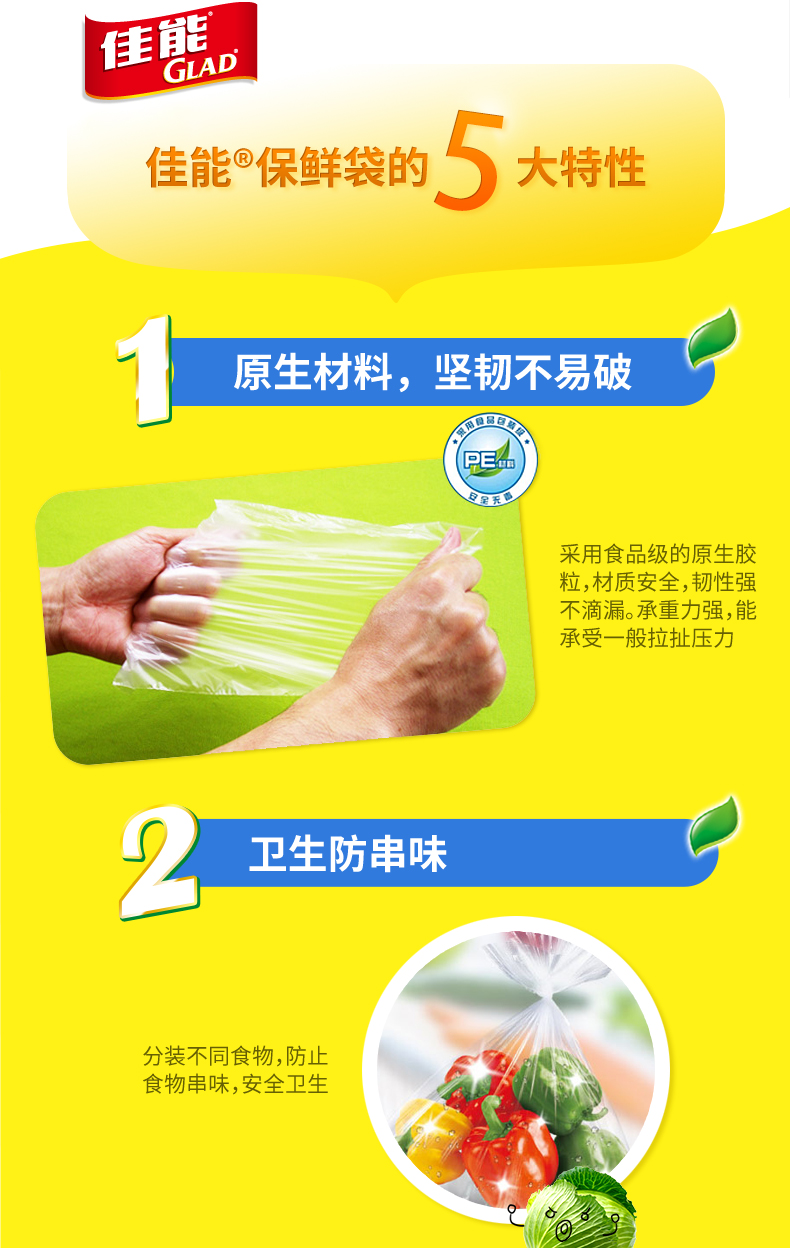 京东自营佳能(Glad)平口抽取式保鲜袋食品袋大号 BRP25(25cmx35cm*100个)两组装