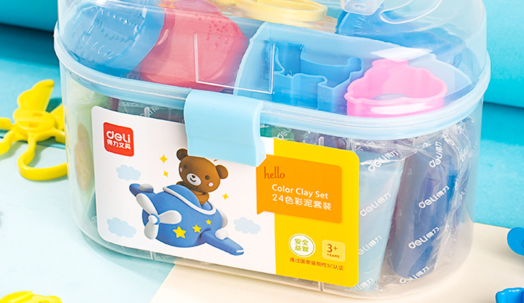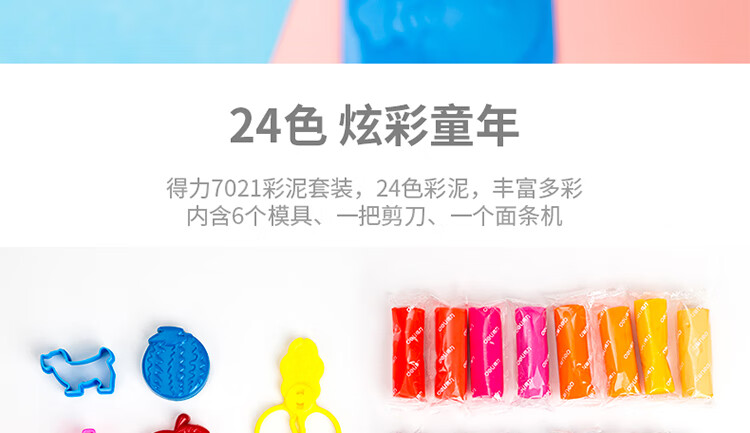 京东自营得力(deli)24色彩泥橡皮泥 DIY手工黏土 男孩女孩儿童橡皮泥玩具工具套装 六一儿童节礼物 蓝色 7021