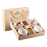 京东自营富贵花开4碗4筷陶瓷餐具套装印字印字广告碗YH-HTSM104