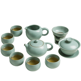 京东自营洛威 汝窑茶具套装家用简约景德镇陶瓷中式功夫汝瓷开片茶壶茶杯整套 10头欢沁