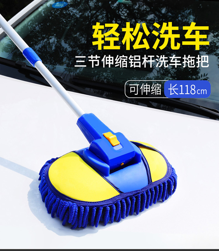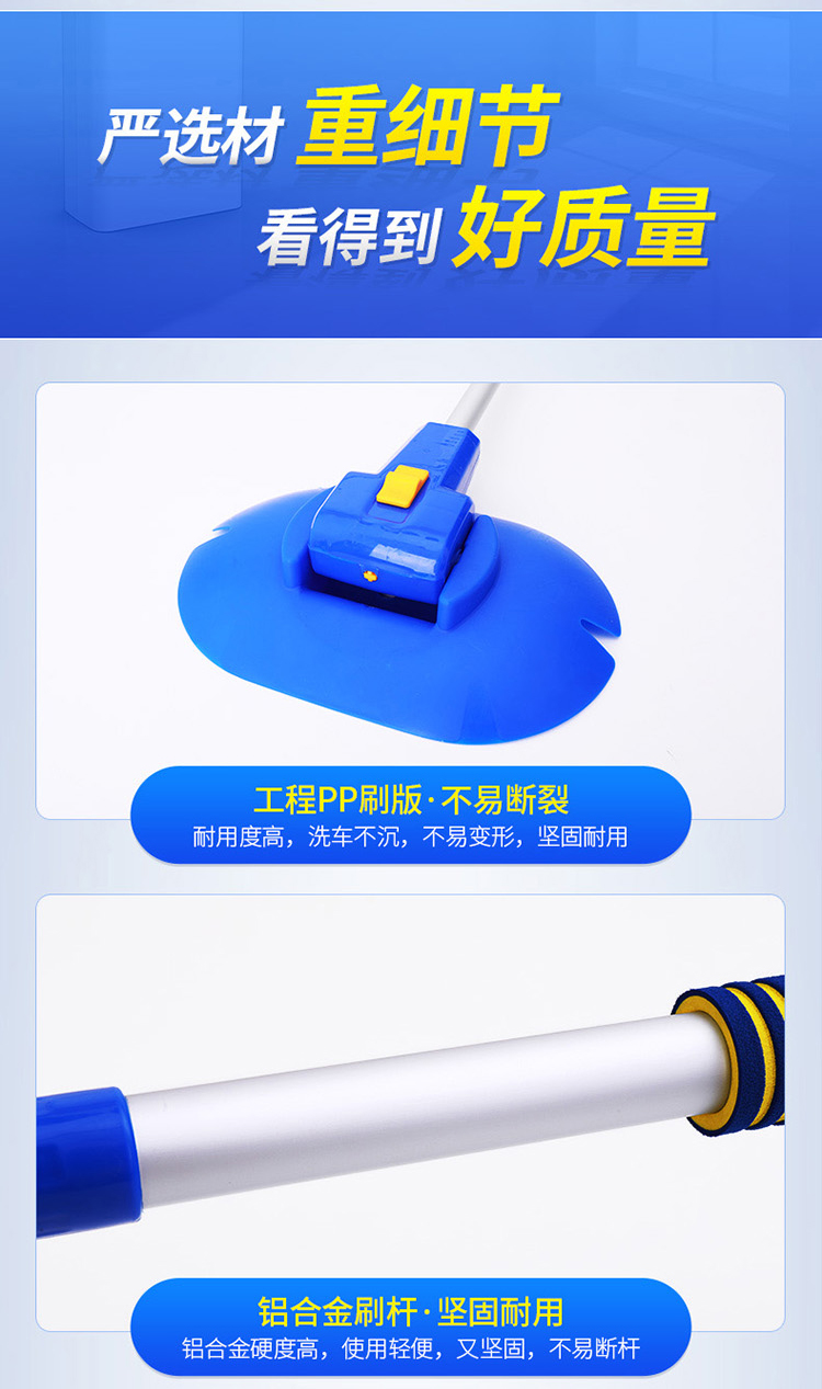 京东自营卡饰社(CarSetCity)升级版洗车拖把 三节长铝杆洗车刷 汽车用掸子擦车刷车拖把 除尘清洁工具 蓝色