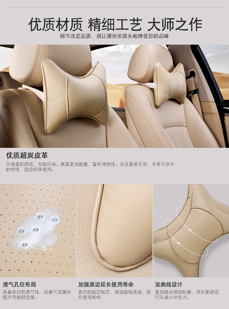 京东自营越野兵 汽车头枕 汽车用品 座椅头枕车用护颈枕头靠枕四季通用款车枕头 黑色 一对装