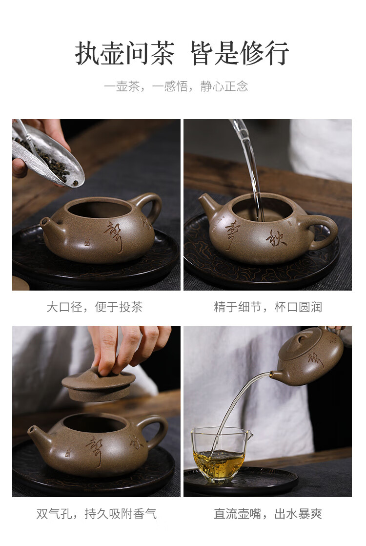京东自营千寿堂 紫砂壶功夫茶具茶壶宜兴手工壶 收藏证书 王镇学石瓢壶200ml