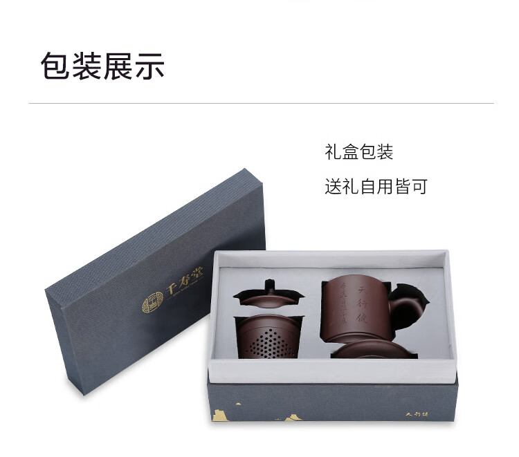 京东自营千寿堂 茶杯 紫砂杯马晓君老师全手工刻字制作四件杯茶水分离杯过滤茶叶泡茶杯功夫茶具 天行健