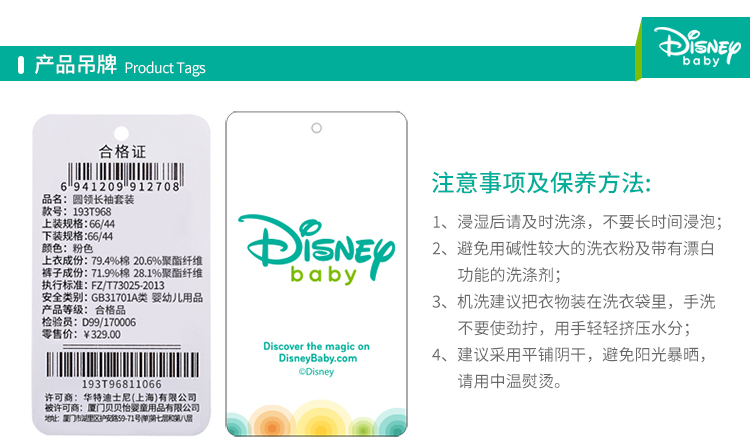 京东自营迪士尼(Disney)童装 女宝宝保暖套装春秋女童卫衣百搭裤子2件套 粉色6个月/身高66cm