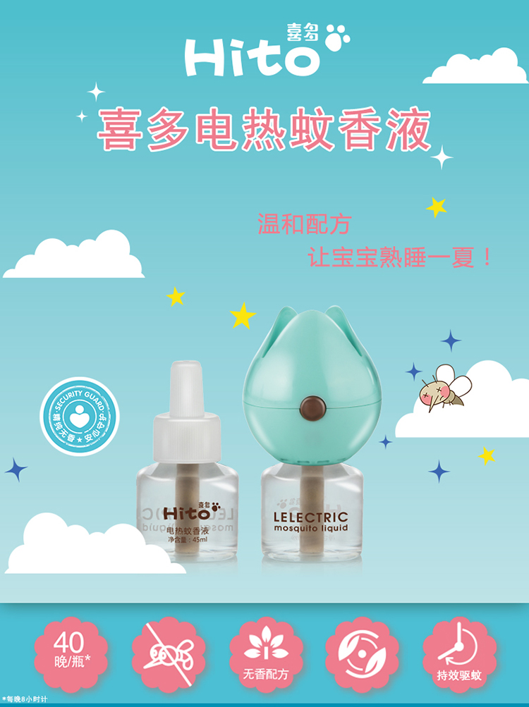 京东自营喜多电蚊香 婴幼儿童驱蚊液防蚊液 宝宝驱蚊水 防蚊电蚊香液(2瓶+1加热器) CDHN33107