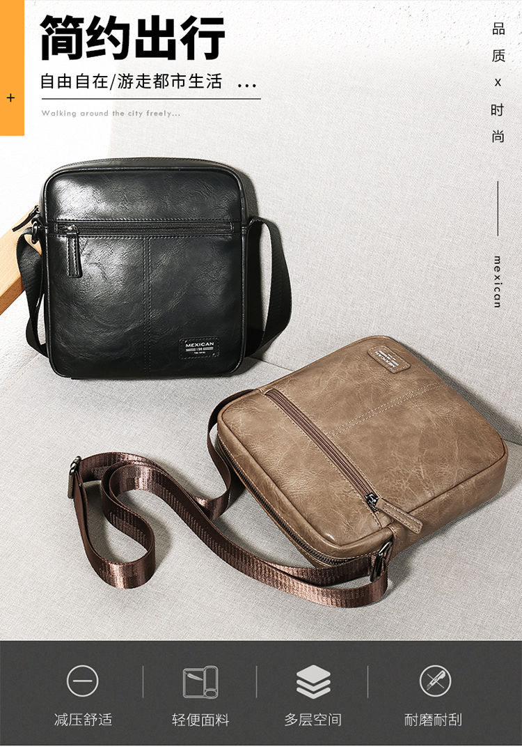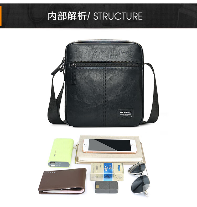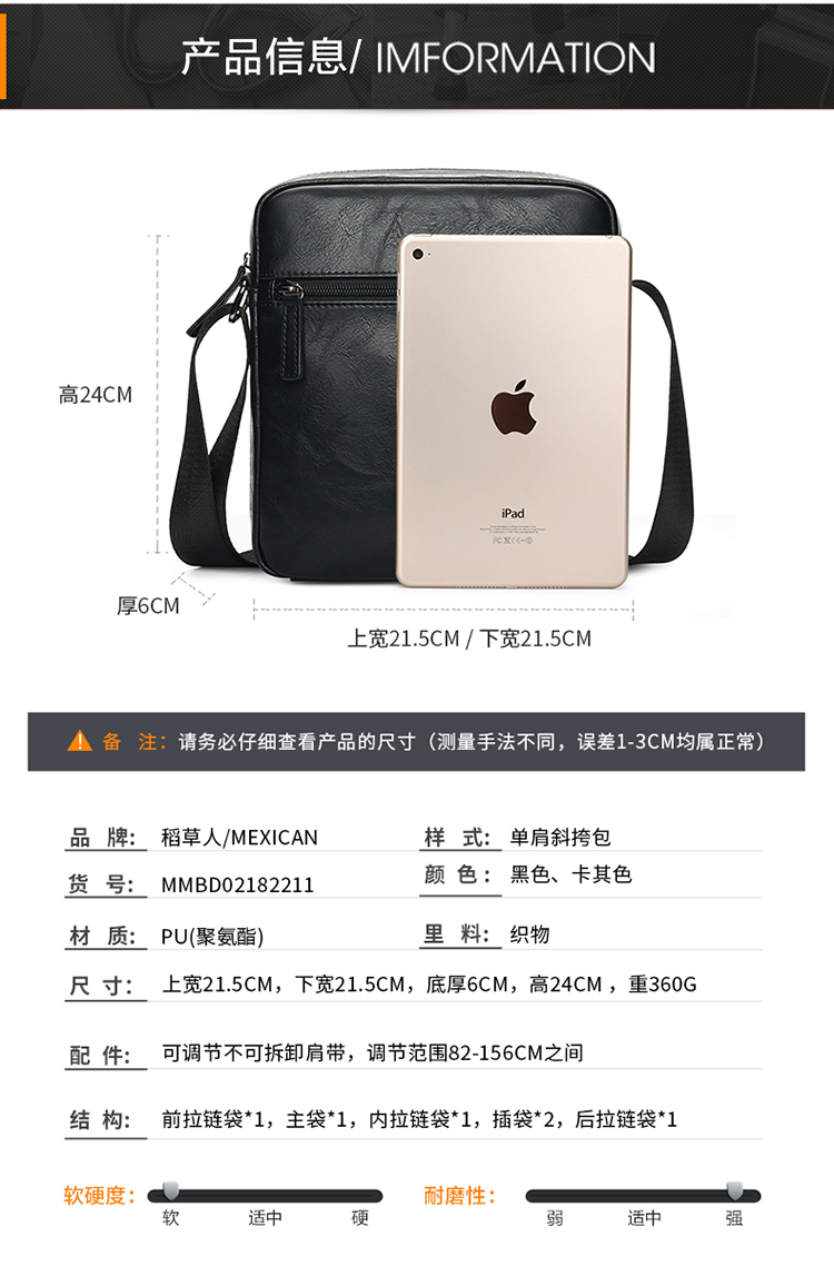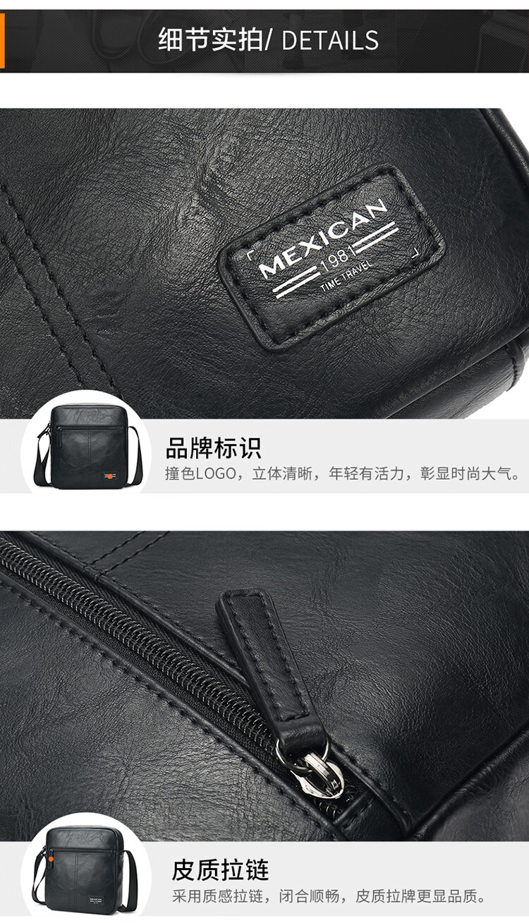 京东自营稻草人(MEXICAN)男士单肩斜挎包休闲包百搭邮差包潮流背包时尚胸包MMBD02182211BK01A