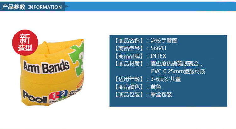京东自营INTEX 56643充气水袖 儿童学游泳手臂圈3-6岁小孩套胳膊双气室浮圈玩具