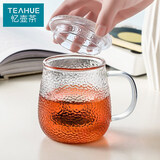 京东自营忆壶茶 YIHUTEA 锤纹茶杯玻璃杯泡茶杯茶水分离水杯子办公室茶具男女士带过滤花茶红茶杯400ml