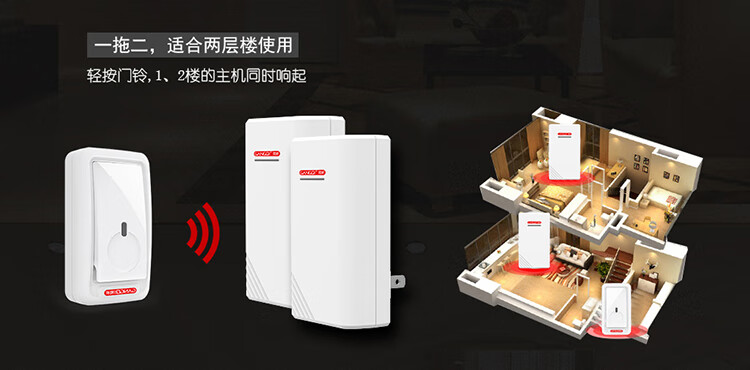 京东自营岡祈(Gangqi)A601-2 门铃无线家用远距离无线门铃用电池一拖二电子遥控门铃老人呼叫迎宾器