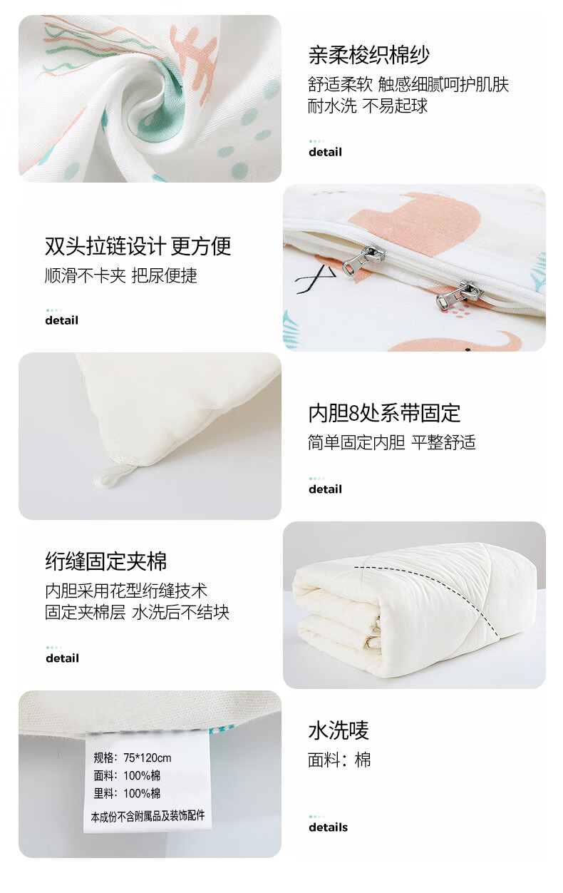 京东自营南极人(Nanjiren)婴儿睡袋 春夏棉儿童被子宝宝被防踢被子可脱内胆套装白底印水母90*150cm