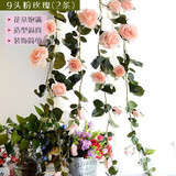 京东自营盛世泰堡 仿真玫瑰花藤 吊顶藤蔓干花假花塑料花装饰藤条 客厅阳台餐厅布置 9头粉玫瑰2条装