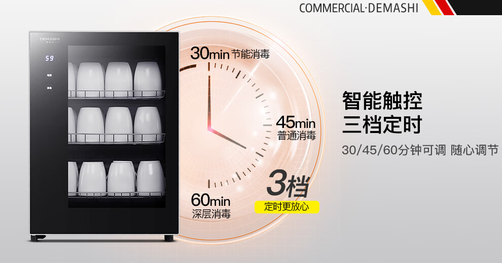 京东自营德玛仕(DEMASHI)茶杯消毒柜 家用商用小型高温迷你茶具碗筷餐具桌面式幼儿园办公室用 三层台式消毒碗柜