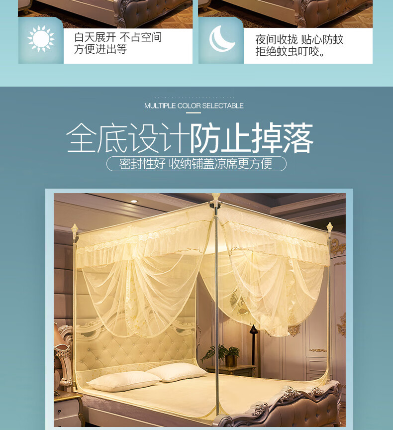 京东自营南极人NanJiren 坐床式蚊帐 三开门包床式拉链方顶蒙古包蚊帐双人加大家用 1.8米床