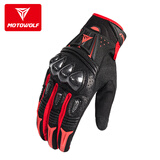 京东自营摩多狼MOTOWOLF摩托车骑行手套真皮夏季透气防摔机车越野碳纤维护壳骑士装备春夏秋款四季通用0304红色XL