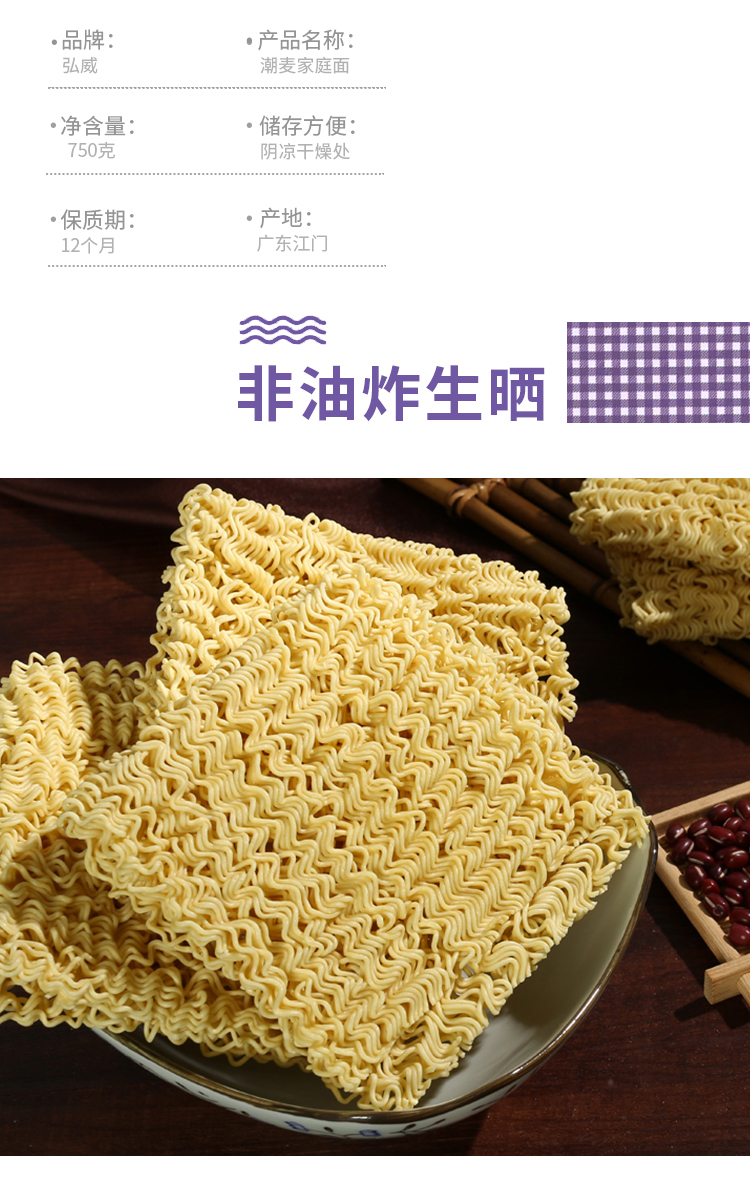 京东自营弘威 家庭面条 港式非油炸整箱家庭装面饼 家庭面750g