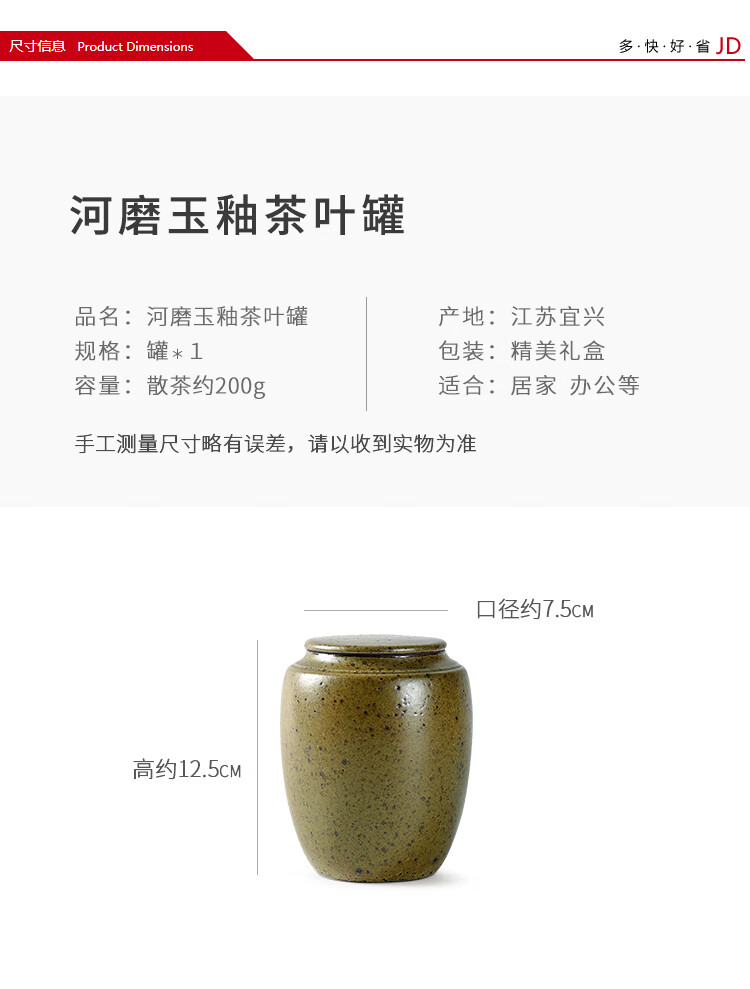 京东自营金镶玉 茶叶罐陶瓷功夫茶具配件储茶罐密封罐 宜兴紫砂河磨玉釉茶叶罐