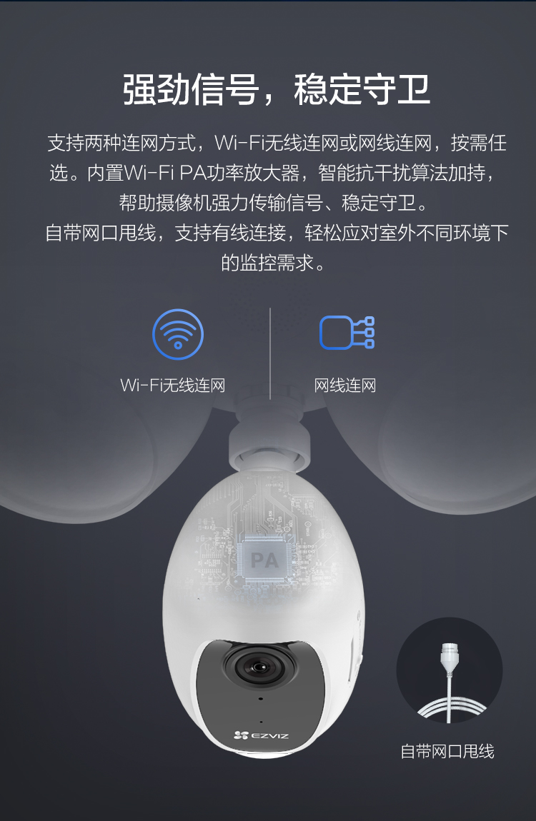 京东自营萤石(EZVIZ)LC1C庭院灯摄像机 星光级摄像头 双LED灯 PIR人体感应 主动防御 双向语音对讲 H.265编码