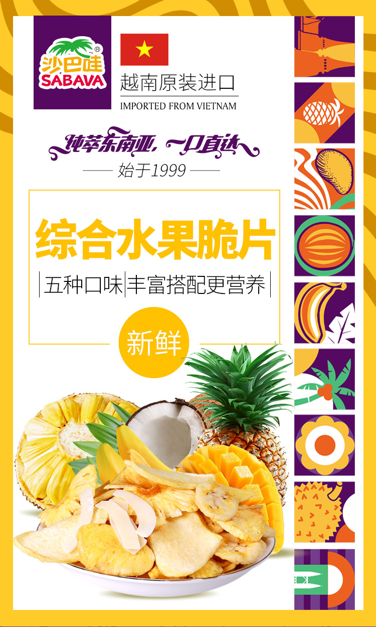 京东自营越南进口 沙巴哇(Sabava) 综合水果干脆片 100g/袋(原味)即食水果干 进口休闲零食小吃