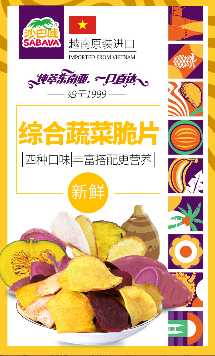 京东自营越南进口 沙巴哇(Sabava) 综合蔬菜干脆片 100g/袋(原味)即食蔬菜水果干 休闲零食小吃