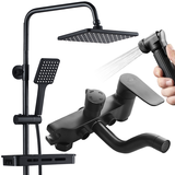 京东自营名爵(MEJUE)精铜主体淋浴花洒套装 增压花洒喷头带置物架妇洗器黑色方形四功能淋浴器Z-05122