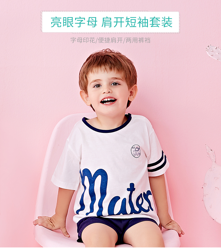 京东自营迪士尼(Disney)童装 男童套装夏季新款纯棉男宝宝外出两件套字母肩开短袖套装 米白24个月/身高90cm