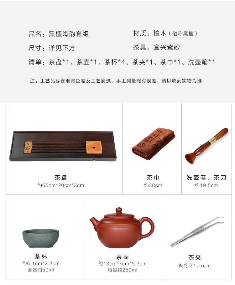 京东自营金镶玉 茶具套组 原矿紫砂茶壶茶杯实木黑檀茶盘 家用整套功夫茶具套组 黑檀陶韵套组