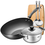 京东自营爱仕达 锅具套装 炒锅不易锈铁锅汤锅套装送菜板铲勺 5件套 燃气灶专用 PH02A1WG