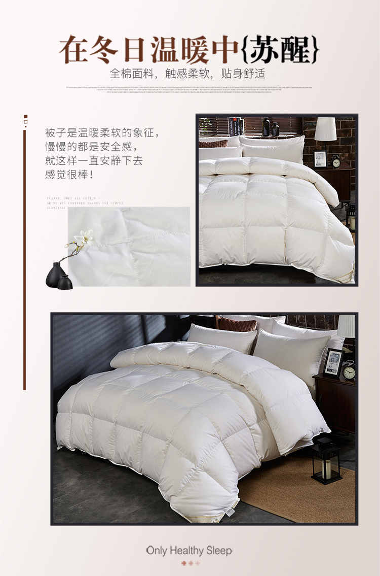 京东自营意尔嫚 羽绒被子 全棉防羽鹅毛被芯 加厚保暖透气秋冬天单双人羽毛被 200*230cm 白色