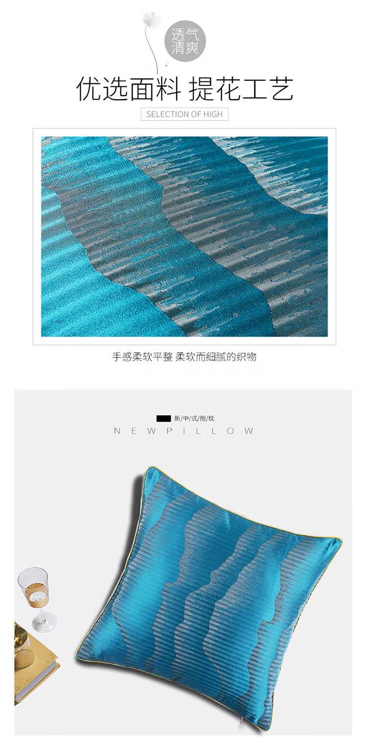 京东自营艾薇 新中式贡缎提花抱枕趴睡枕沙发靠垫办公室靠枕床头靠背汽车腰靠垫腰枕垫芯 万水千山 45*45cm