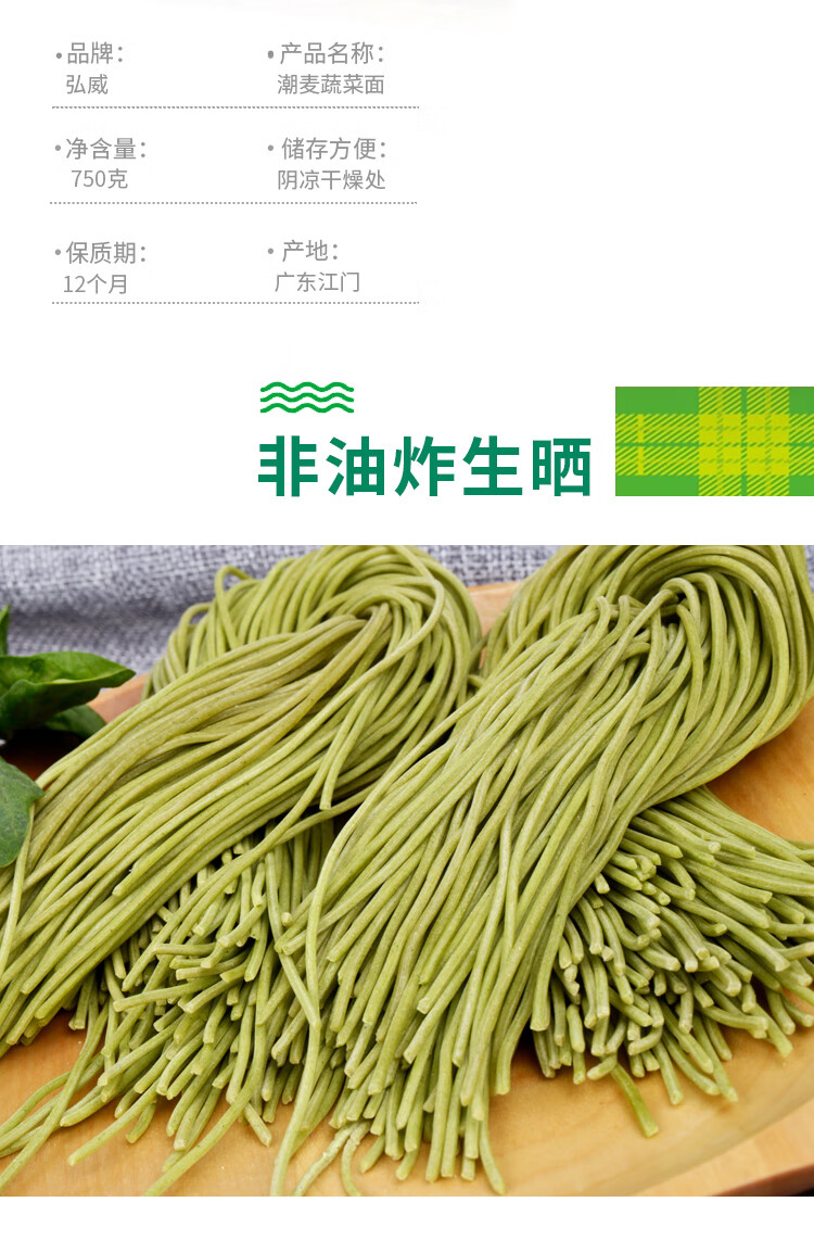 京东自营弘威 蔬菜面条 港式素食面条非油炸 蔬菜面750g
