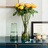 京东自营墨斗鱼 玻璃花瓶北欧轻奢桌面摆件创意水培植物富贵竹植物百合插花雅绿金色描边0425