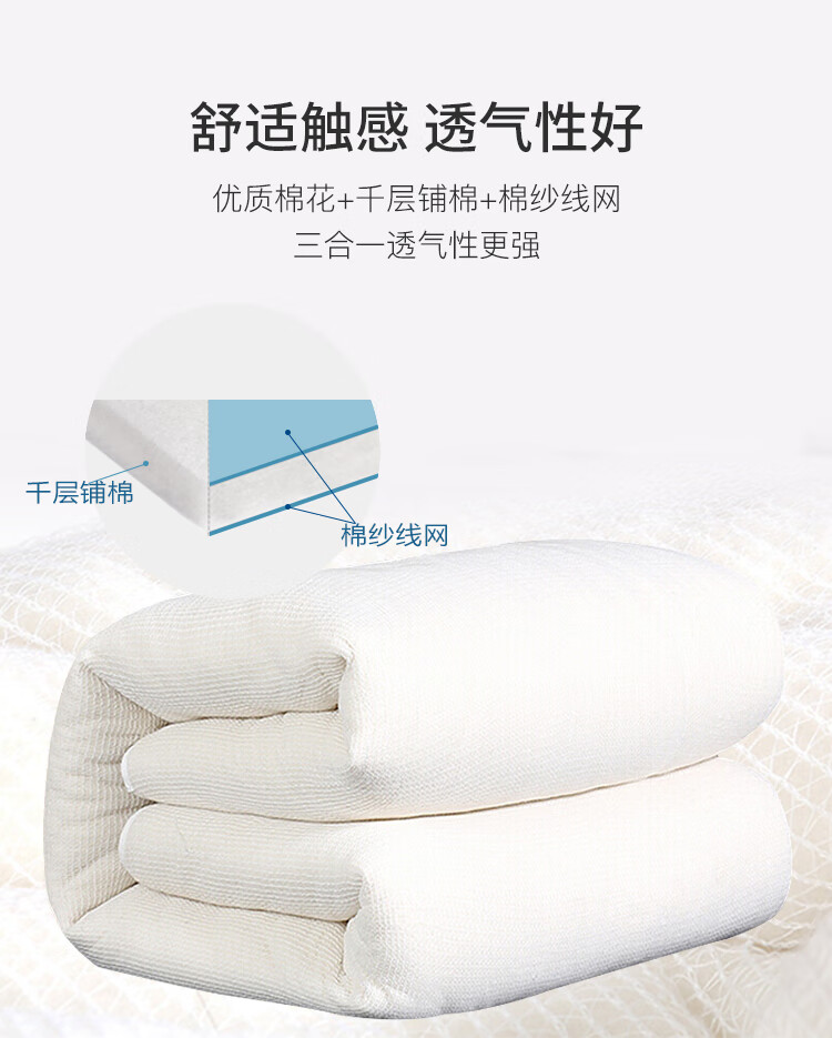 京东自营意尔嫚 被子家纺 棉花被加厚透气保暖秋冬天棉被子 长绒棉单双人被芯 200*230cm 重量6斤 棉花被