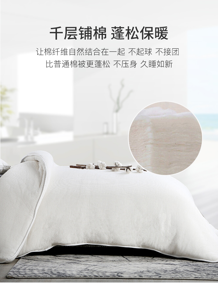 京东自营意尔嫚 被子家纺 棉花被加厚透气保暖秋冬天棉被子 长绒棉单双人被芯 200*230cm 重量8斤 棉花被