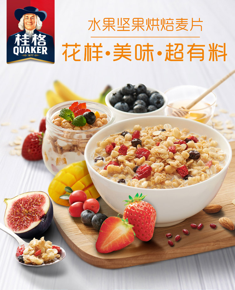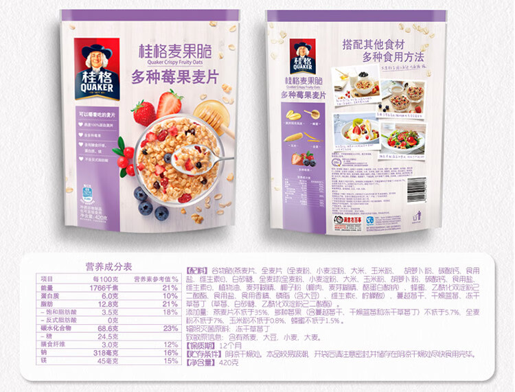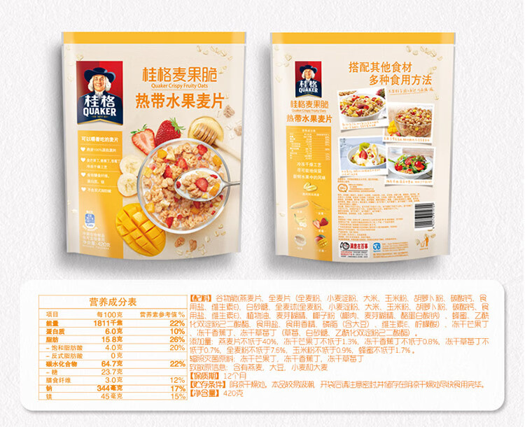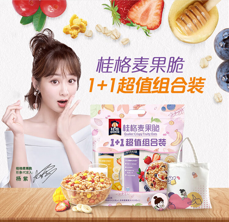 京东自营桂格(QUAKER)麦果脆燕麦片 杨紫同款(多种莓果+热带水果)京东专供 即食早餐麦片 不含反式脂肪酸840g/袋