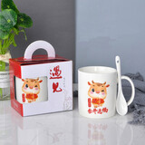京东自营畅宝森 金牛送福直筒杯1杯1勺陶瓷杯