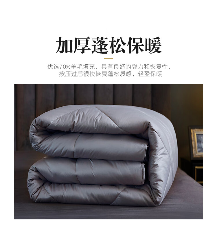 京东自营意尔嫚 羊毛被芯家纺 加厚保暖透气羊毛秋冬天棉被 单双人轻柔被芯 羊毛被 220*240 7斤 灰色-云仓