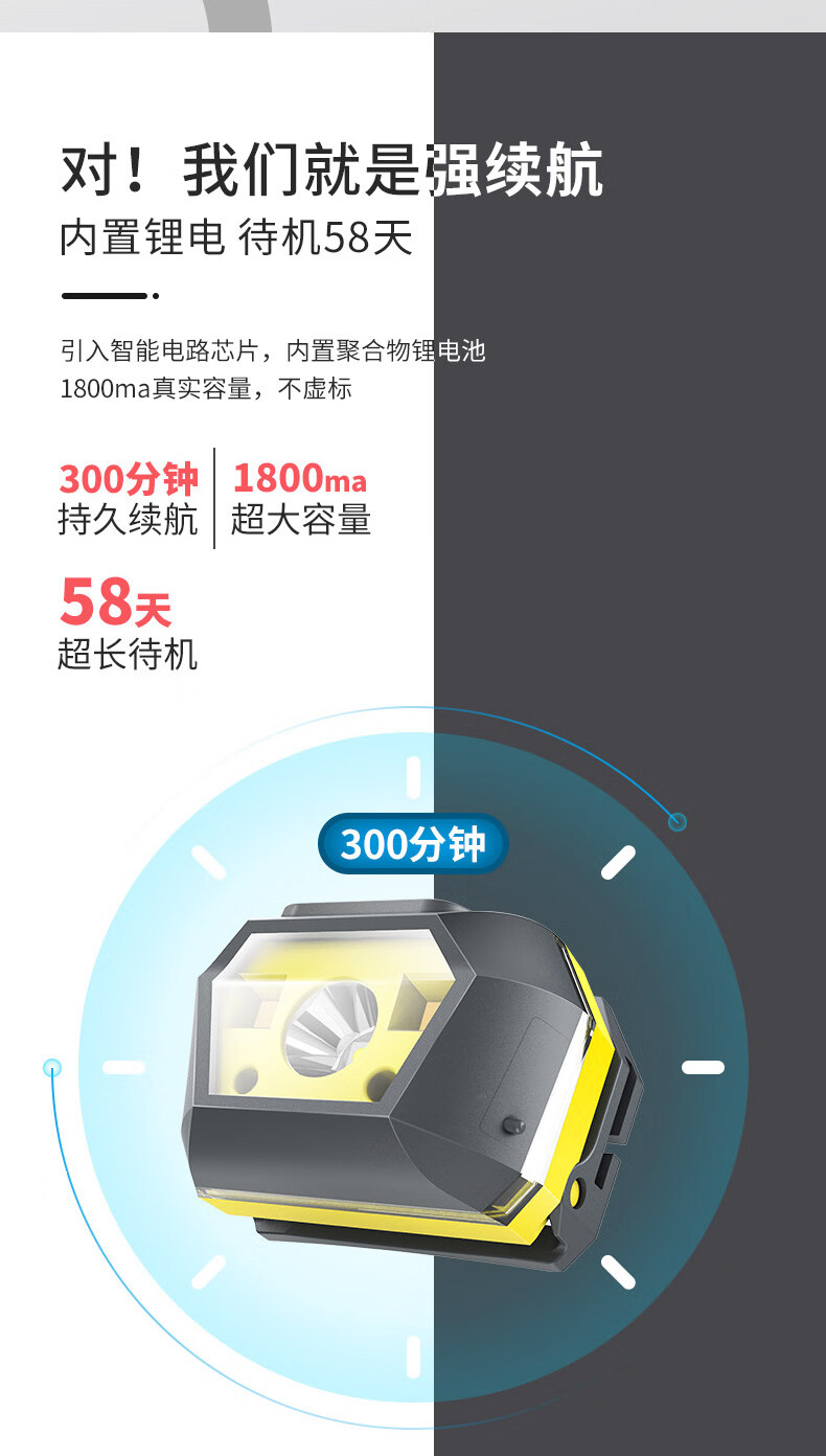 京东自营探路蜂 感应头灯LED强光远射充电头戴式钓鱼夜钓户外防水锂电池超长续航矿灯