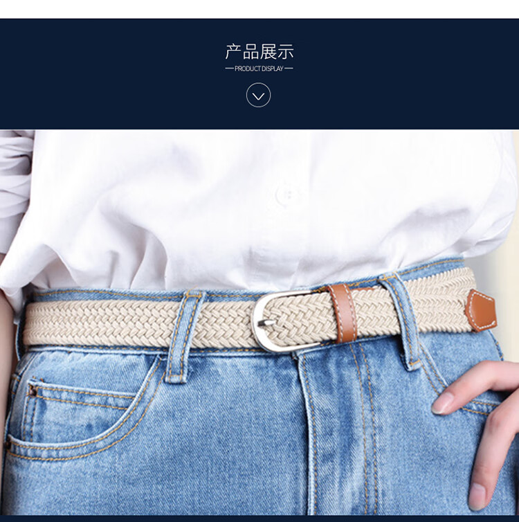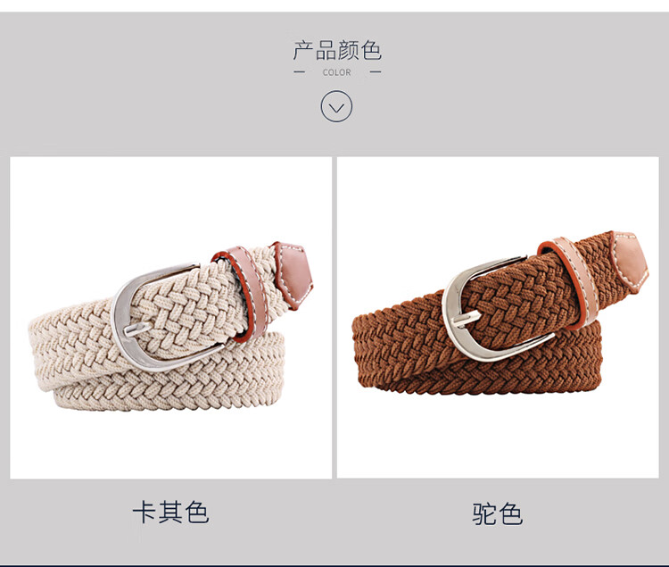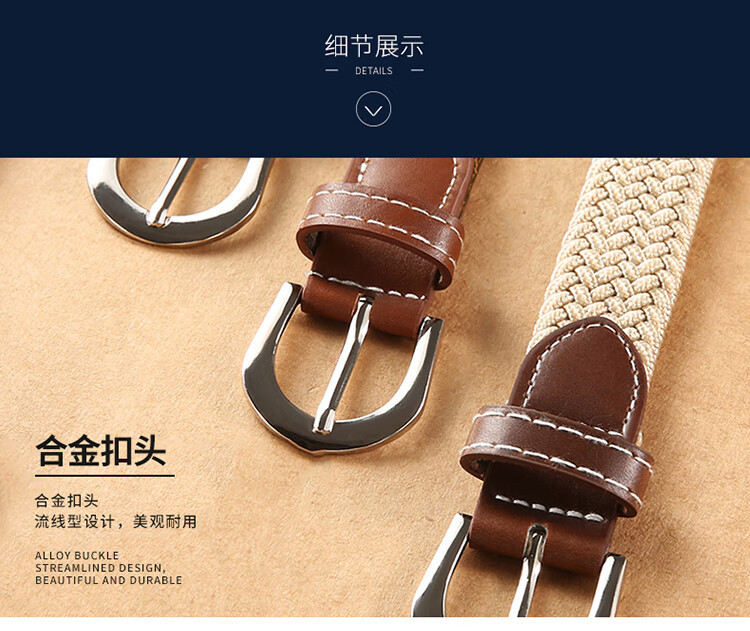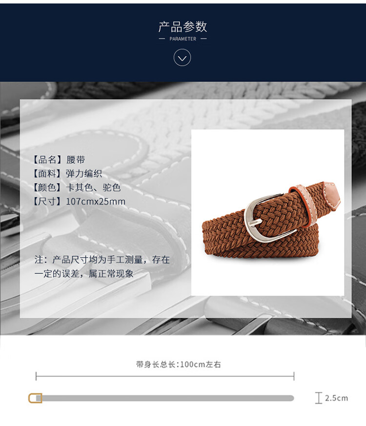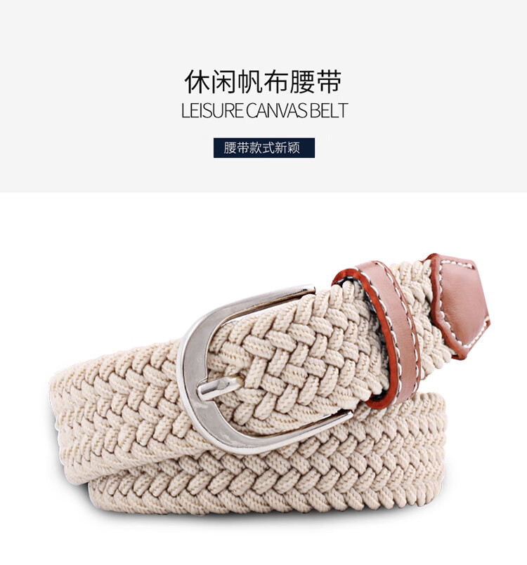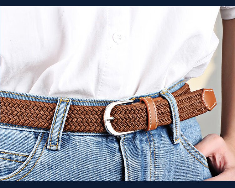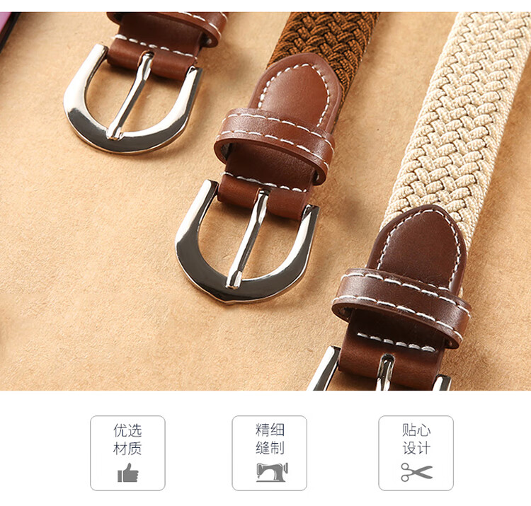 京东自营纪维希 帆布腰带 女士弹力编织百搭帆布裤带 加厚时尚针扣休闲腰带 驼色 JWXH503