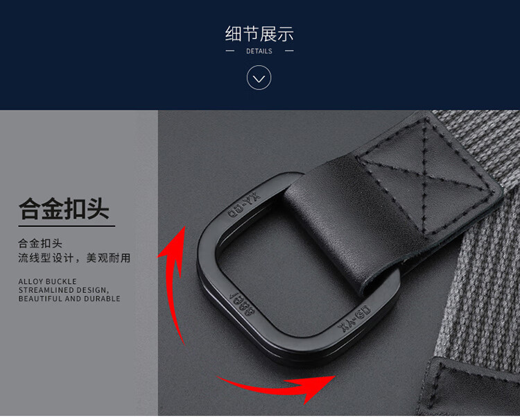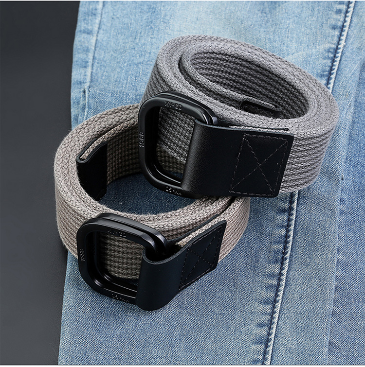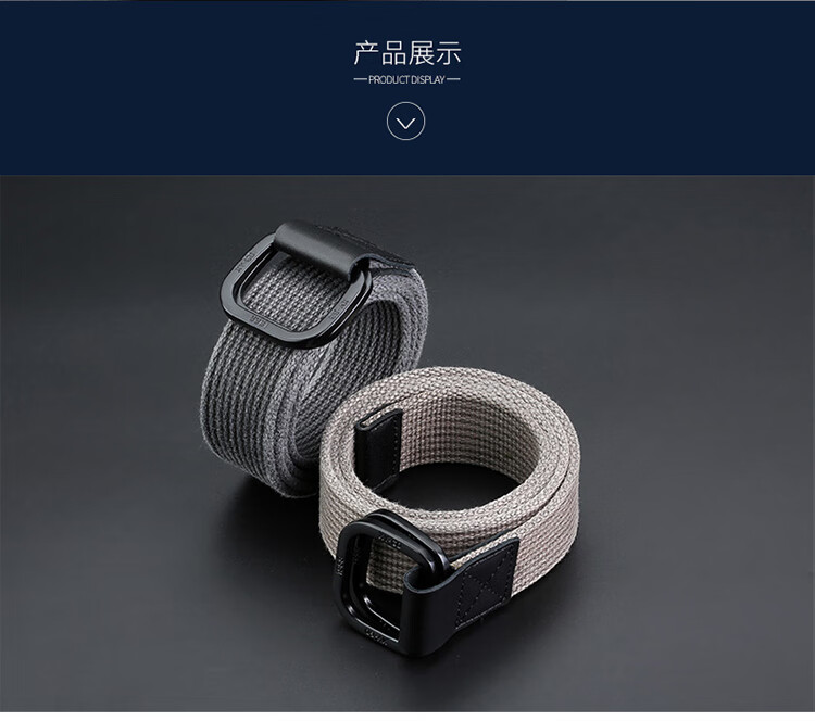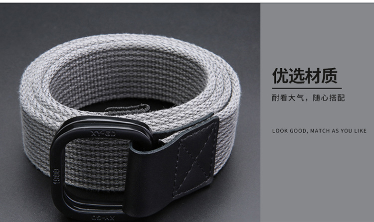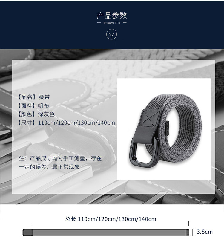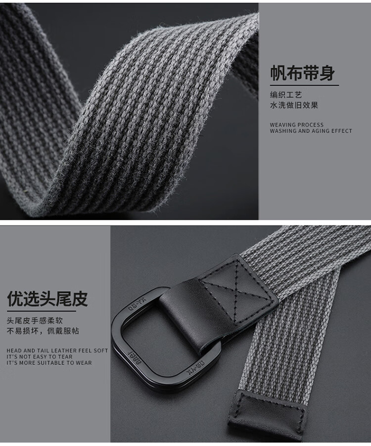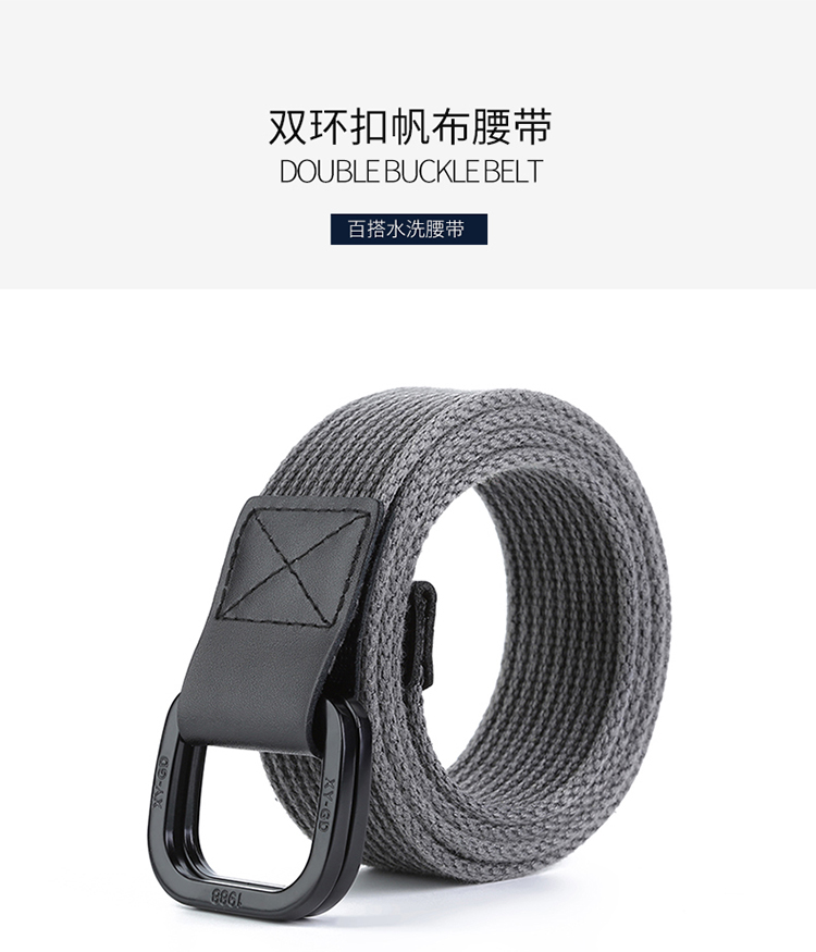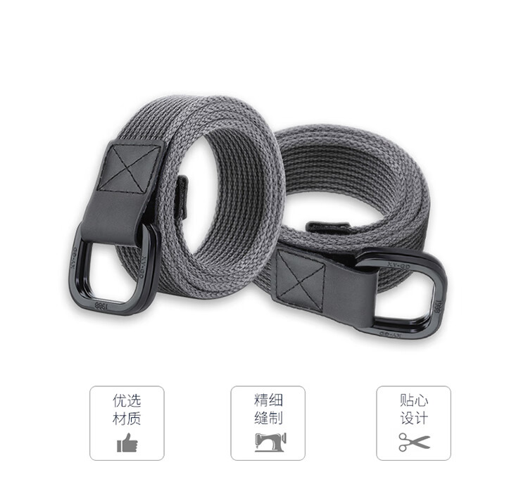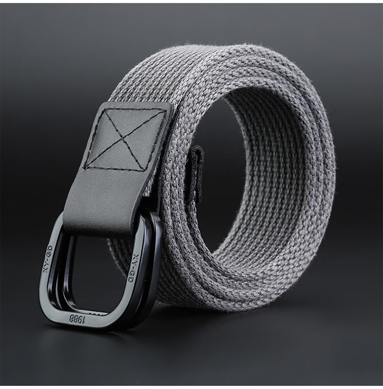 京东自营纪维希 帆布腰带 男士双环扣皮带 休闲帆布户外百搭编织裤腰带 深灰色 JWXH510 120cm